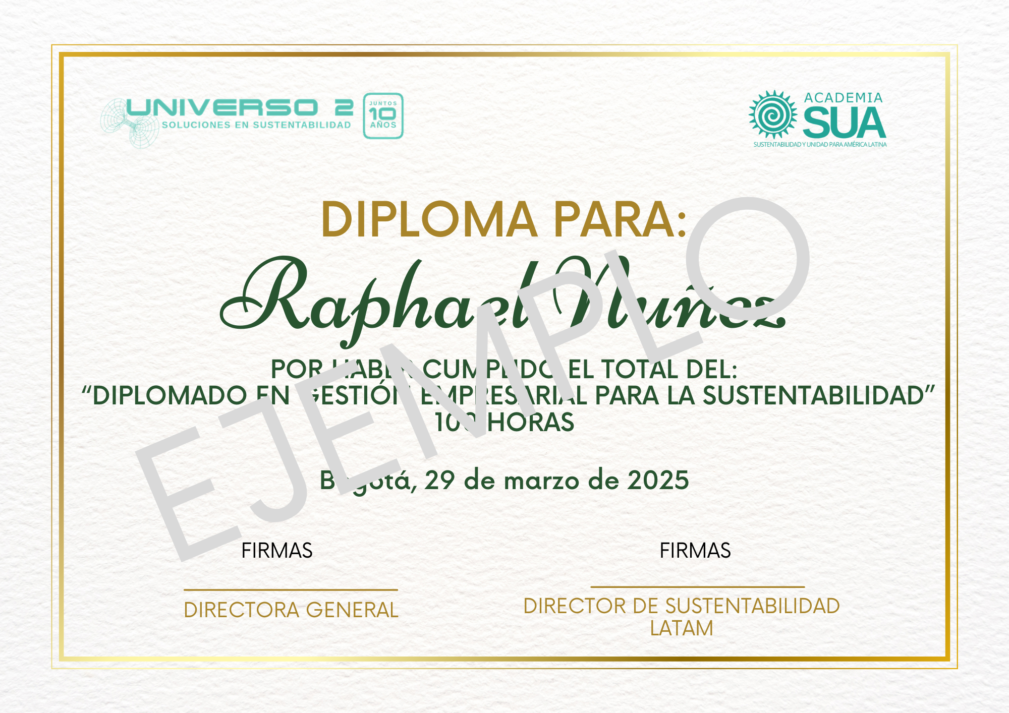 Adquiere las herramientas necesarias para liderar proyectos sustentables en el ámbito empresarial y conviértete en un agente de cambio con el respaldo de la ACADEMIA SUA – Universo2 SAS.